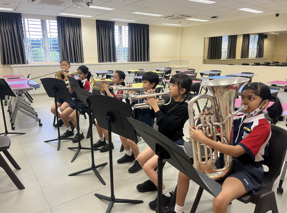 Brass Band CCA enables students to develop their musical abilities through hands-on experience with various brass and percussion instruments. Under teachers' and instructors' guidance, members strengthen their leadership skills whilst fostering essential values of commitment, perseverance, and teamwork. Students gain valuable performance experience through the biennial Singapore Youth Festival Arts Presentation, enriching their musical and educational journey.