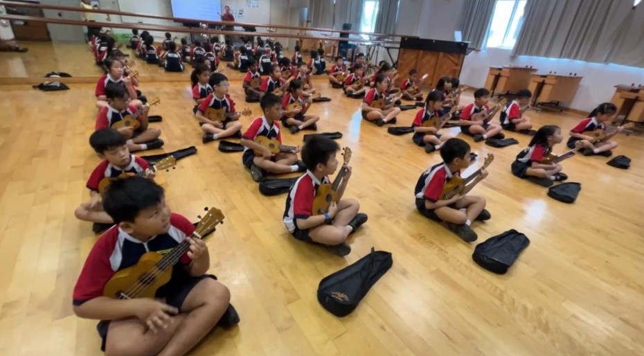 The P3 Ukulele Programme introduces Primary 3 students to music-making through using the ukulele. Students learn fundamental skills including simple chords and chord progressions, enabling them to play popular contemporary songs such as 'Just the Way You Are' and 'Best Day of My Life'.